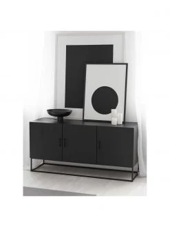 Dutchbone Schwarzes Sideboard Boli mit Rillenglas und Metallrahmen, B 150 x H 90 cm