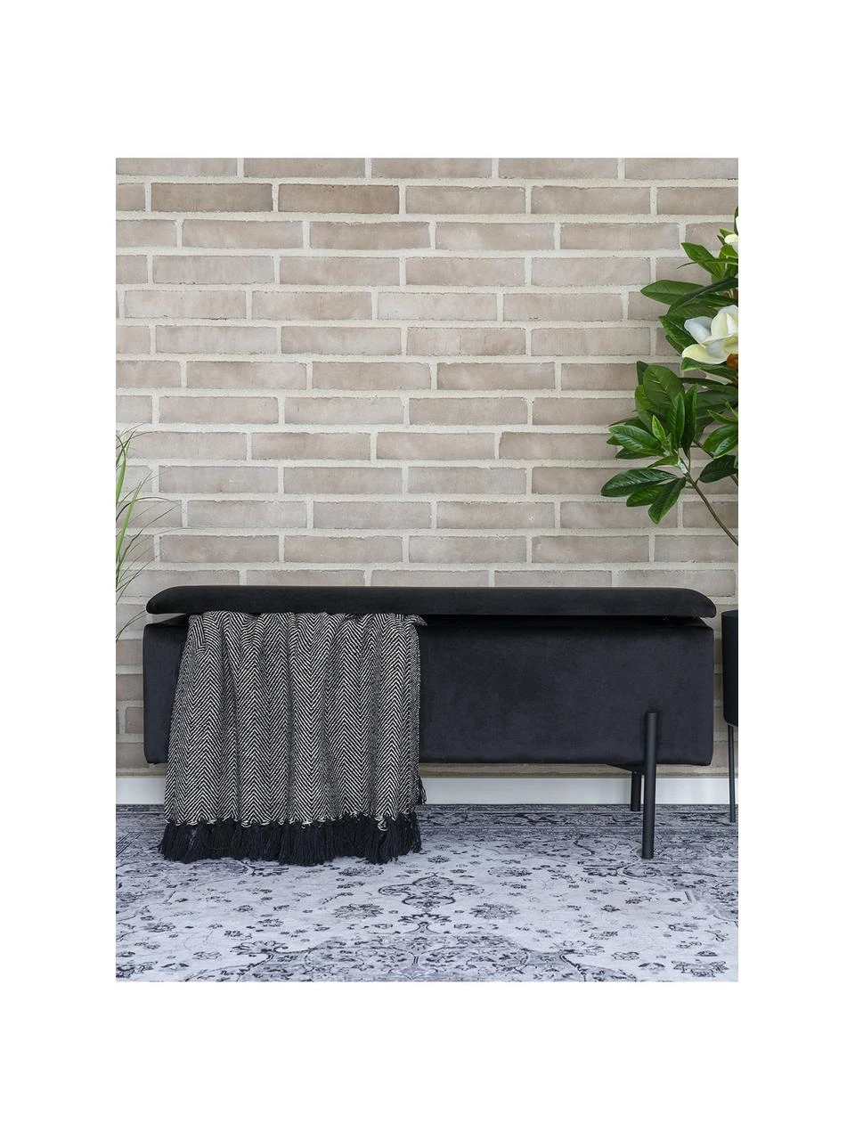 Samt-Polsterbank Woldorf in Schwarz mit Stauraum, B 95 x H 46 cm