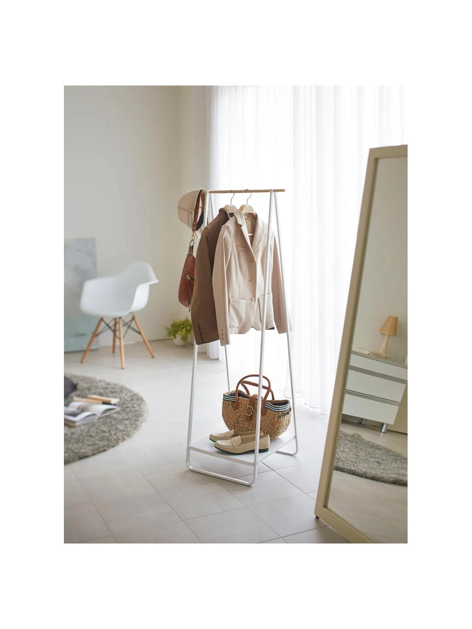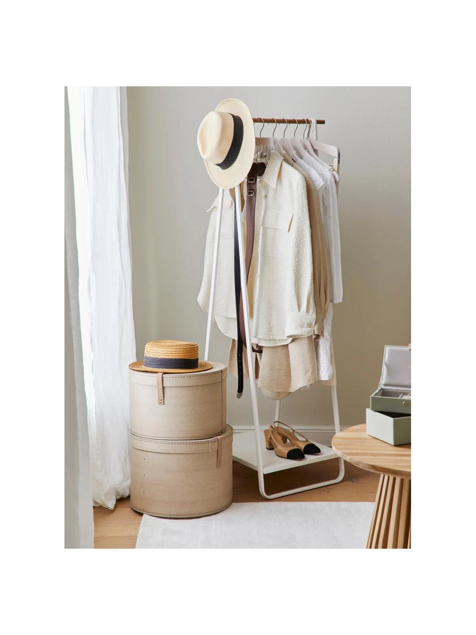Schmaler Kleiderständer mit einer Ablagefläche